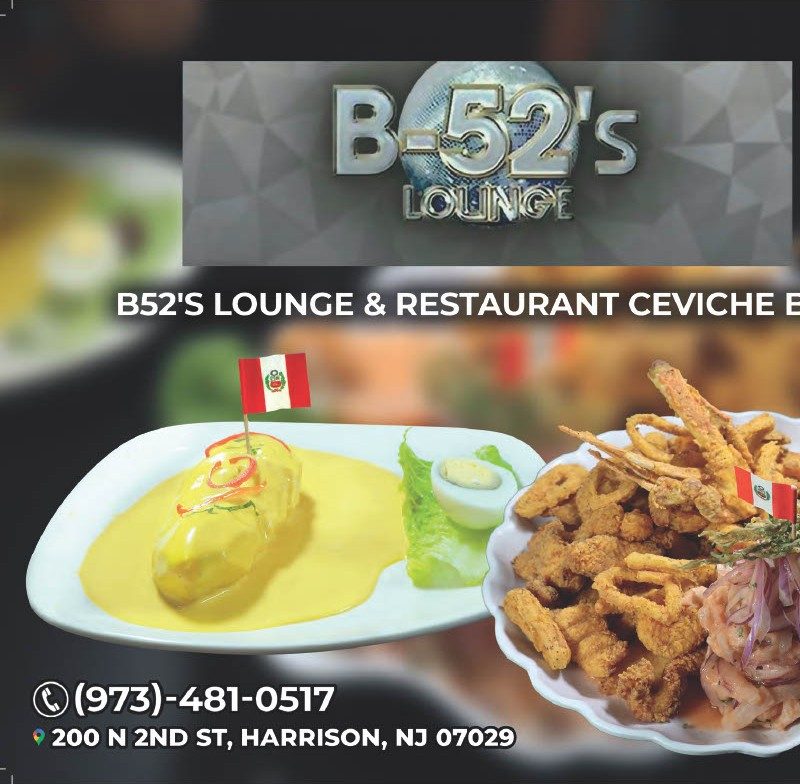 B-52’s Lounge & Restaurant En la ciudad de Harrison New Jersey está el mejor lugar para disfrutar la rica comida peruana. La comida peruana es considerada buena por su amplia variedad de sabores, ingredientes frescos, la influencia de diversas culturas y la creatividad de sus cocineros. Acá vas a encontrar no sólo la rica comida peruana sino los mejores cócteles , como Pisco Sour, o una cerveza para calmar la sed. B-52’s Lounge & Restaurant Dirección: 200 N 2nd St, Harrison, NJ 07029 Ordena en linea : +1(973) 481 0517